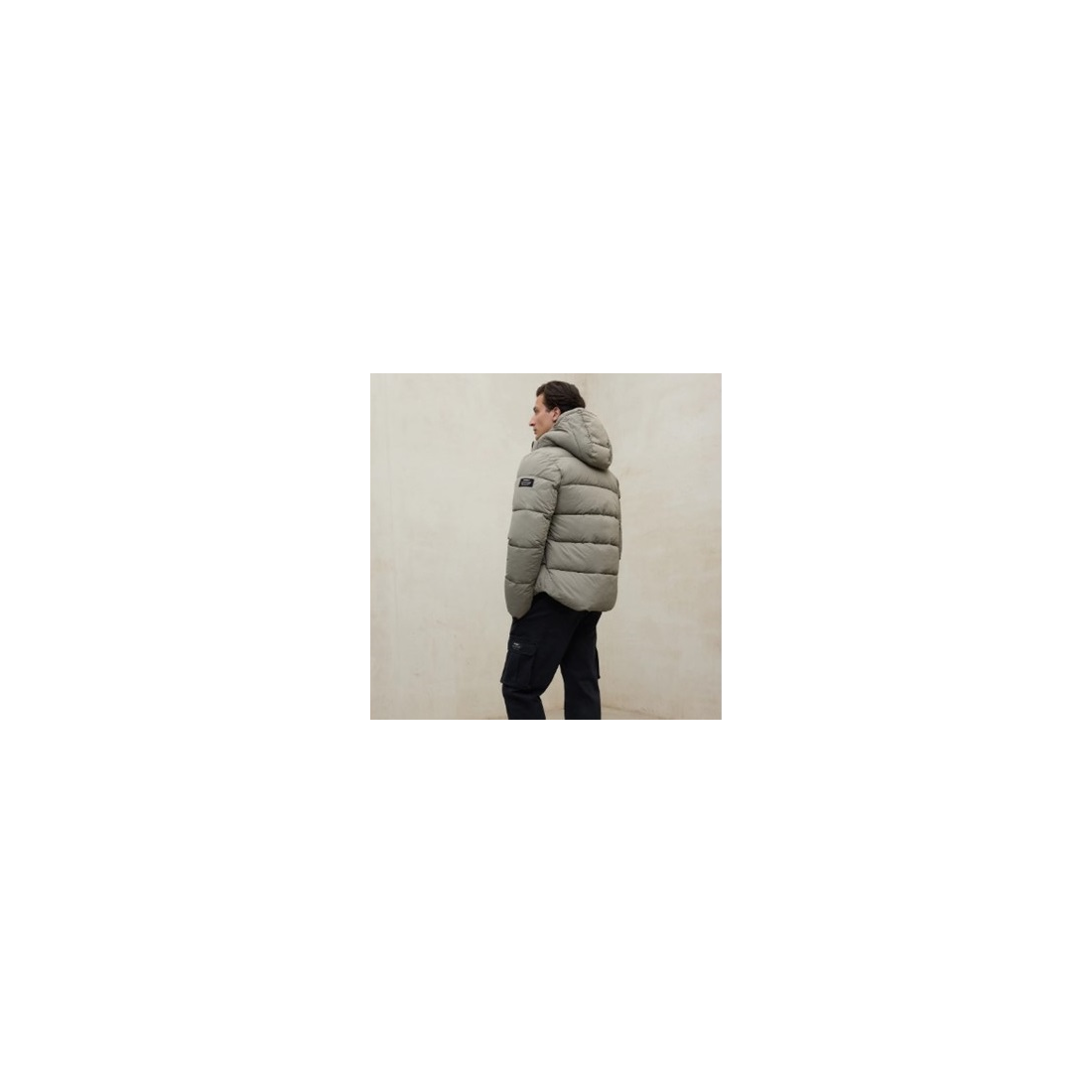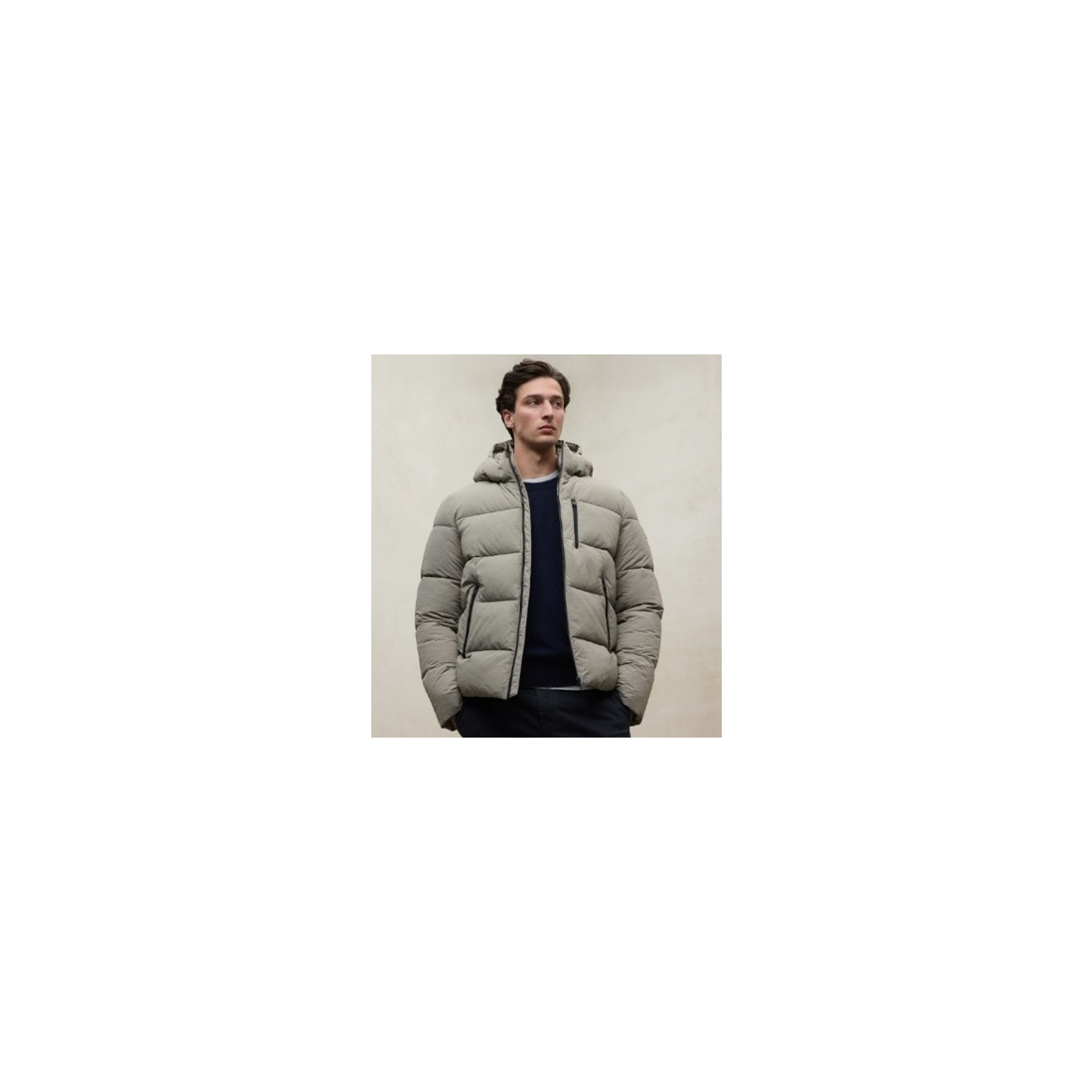 Cazadora Ecoalf Bazon confeccionada de 100% Poliamida reciclada en el tejido principal y 100% Poliéster reciclado en el relleno.