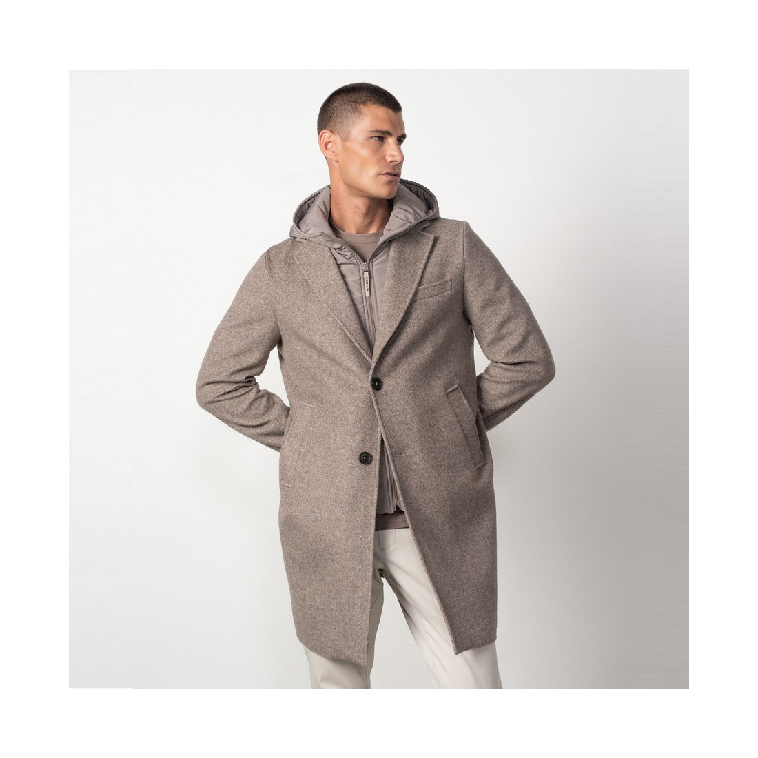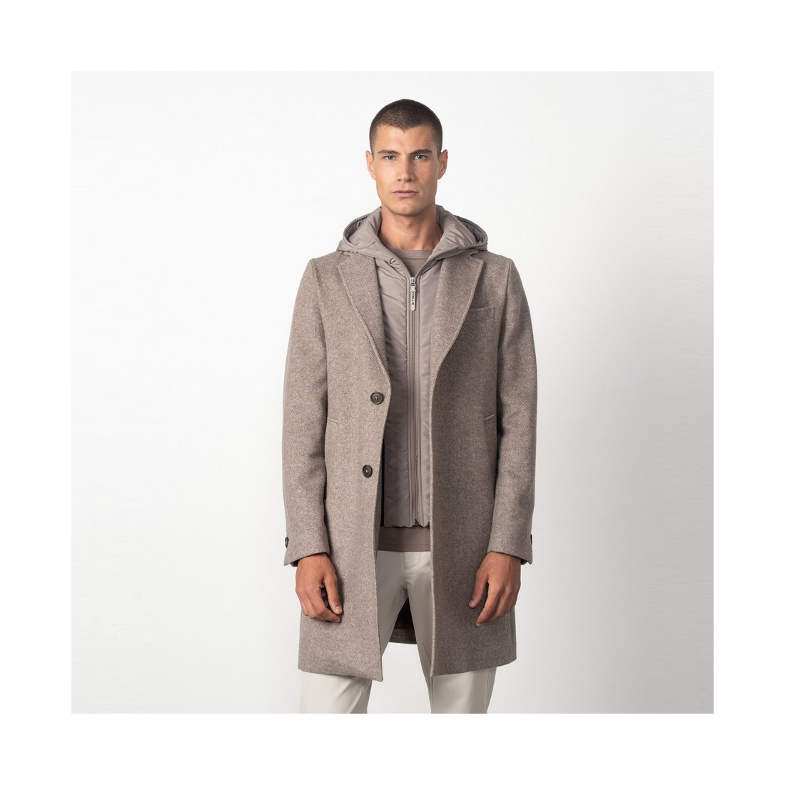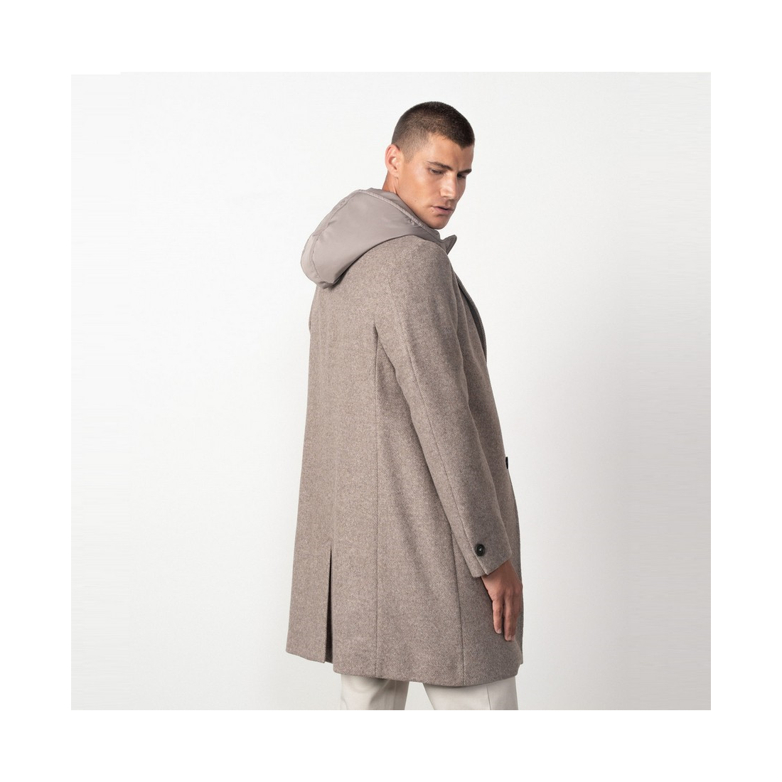 Abrigo Etiem con capucha-vista desmontable hecho en una mezcla de lana.