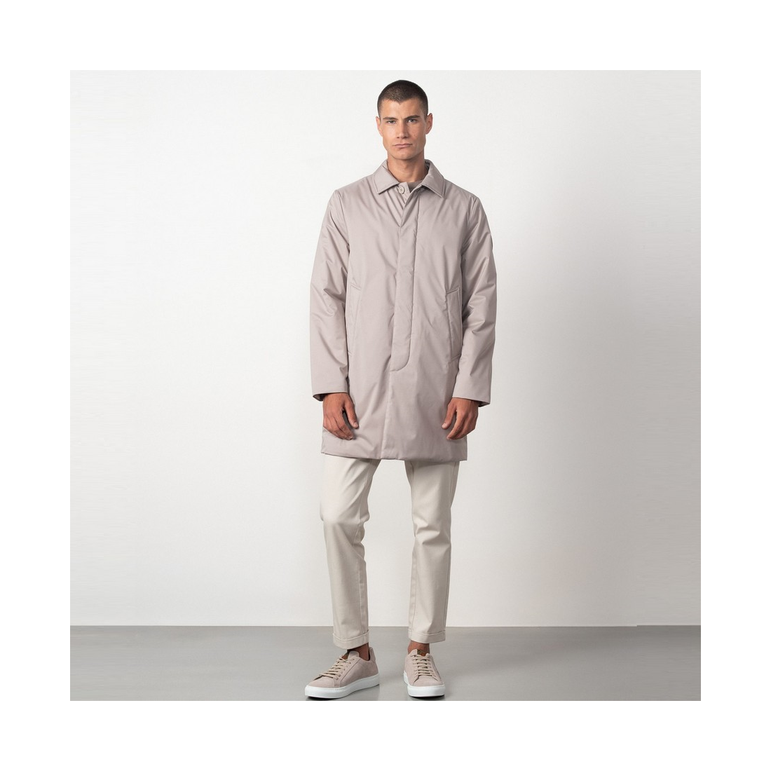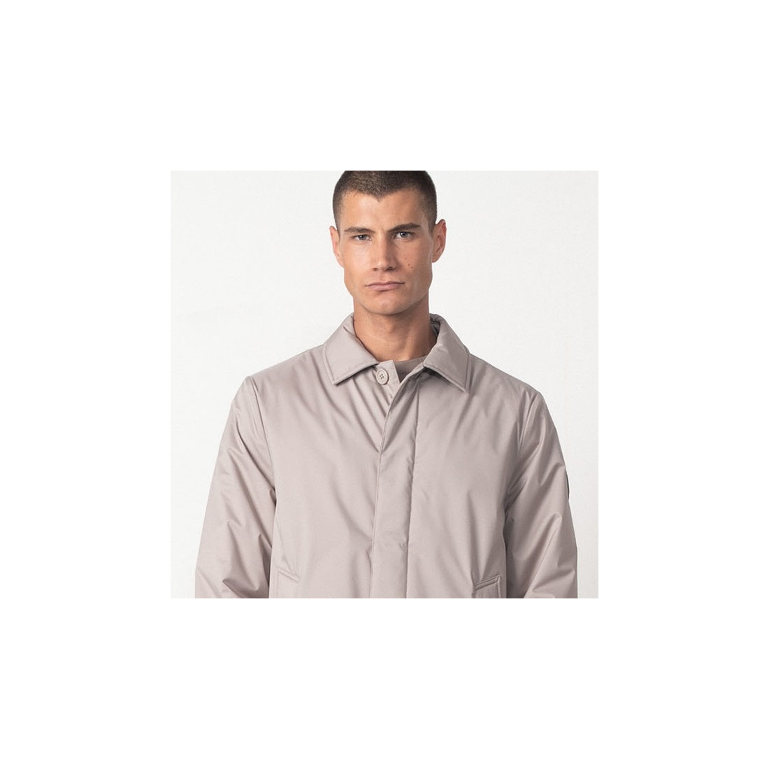 Trench Etiem corto y ultraligero.Esta fabricada en un tejido impermeable y elastico. Prenda sencilla y elegante.