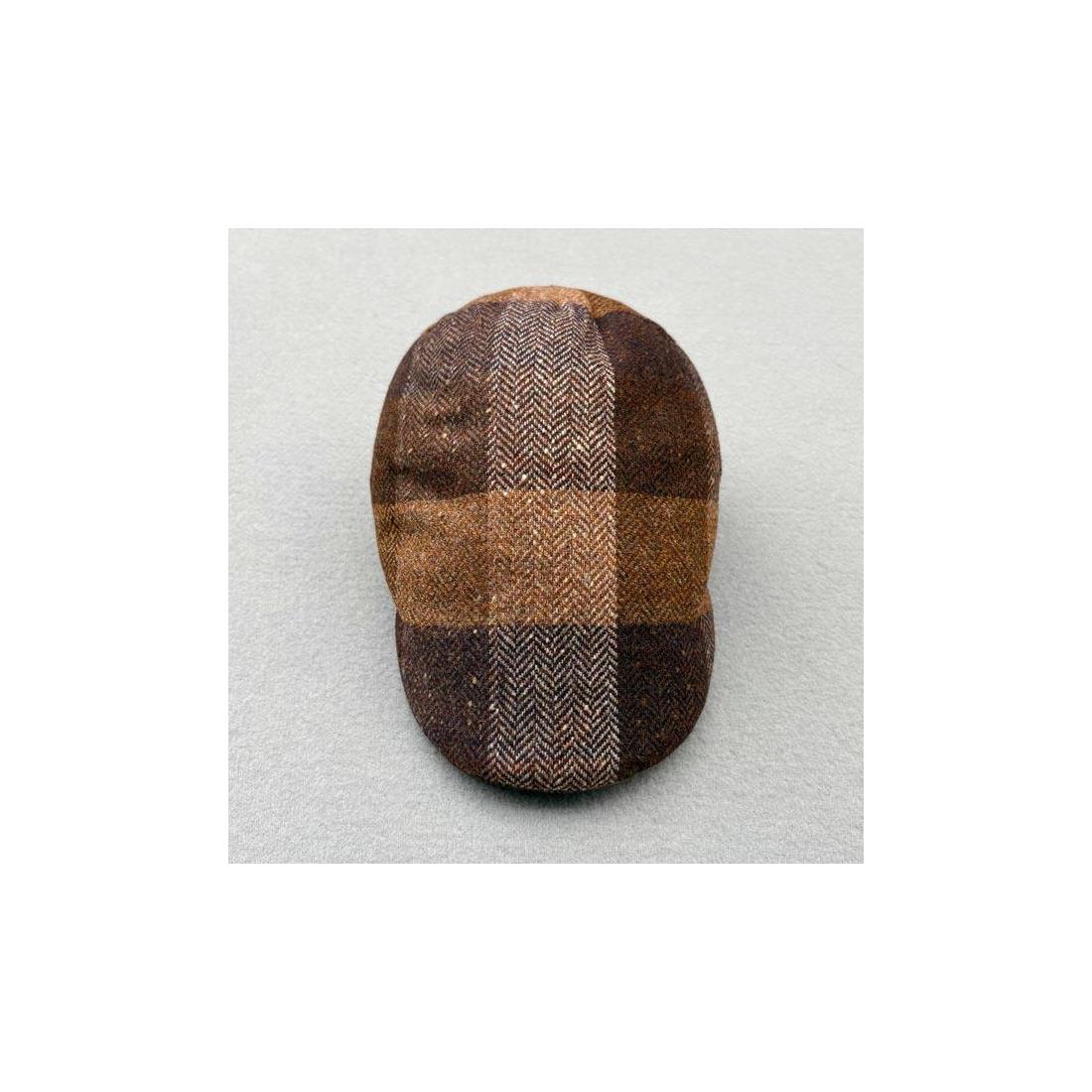 Gorra Beirets en tres piezas, formato broker. Hecha en paño de lana a cuadros. Para un look discreto y elegante.