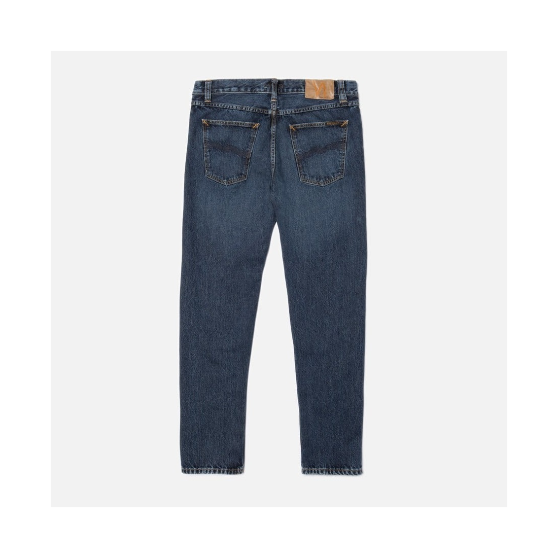 Vaquero Nudie Jeans Steady Eddie de corte regular con pernera cónica confeccionado en denim orgánico azul oscuro lavado.