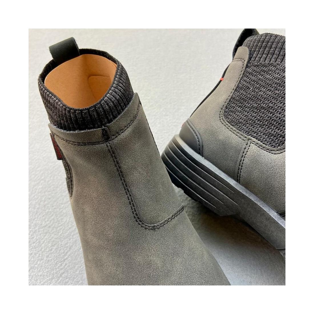 Bota elaborada en piel reciclada resistente al agua, tiene el forro de mezcla de lana suave y transpirable para mantener los pies cómodos y secos. Diseño slip-on con refuerzo de goma en el talo´n para mayor estabilidad.