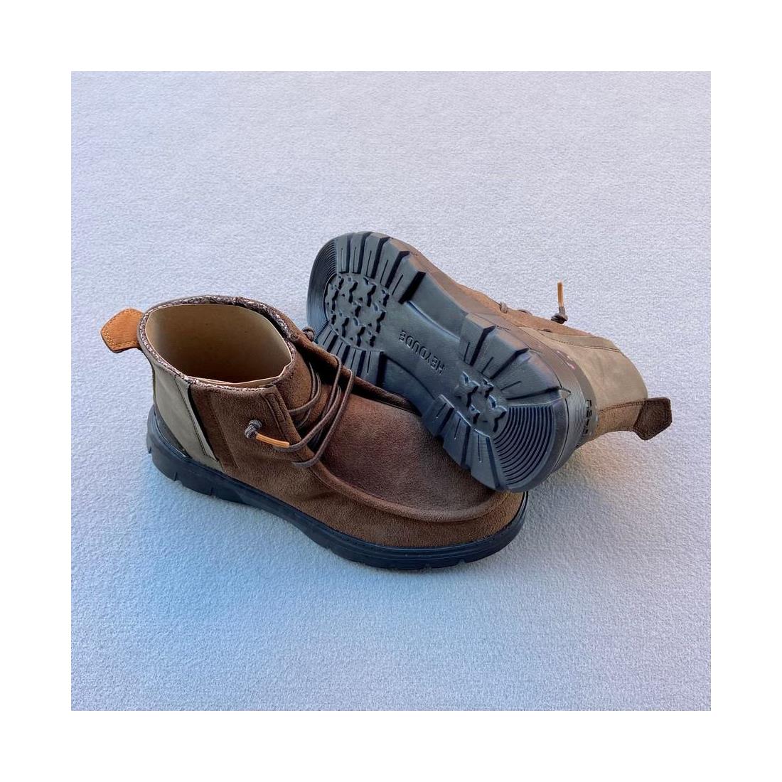 La bota Hey Dude Boris Eco está fabricada con el nuevo ante reciclado. Esta forrada para mantener la zona cómoda y caliente.