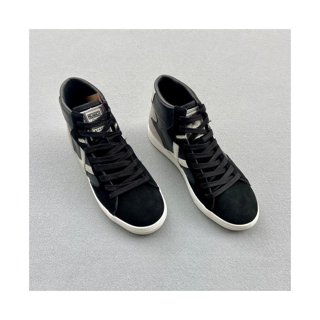 Esta zapatillas de media caña de estilo retro estan fabricadas en piel con detalles de la X en gris y talón en serrage.