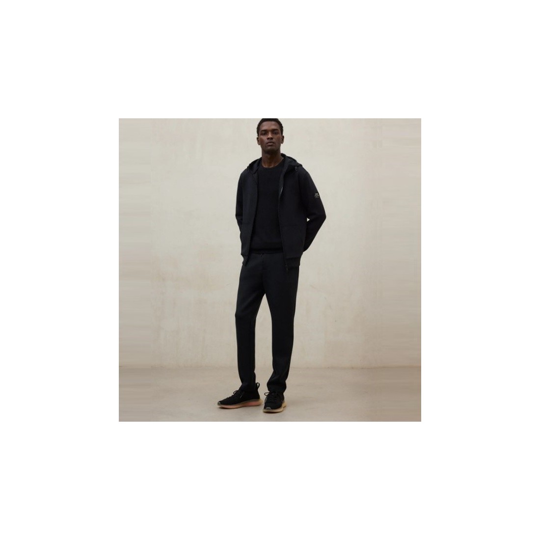 Sudadera Ecoalf Agadir fabricada con un tejido 48% Poliéster reciclado (Tex2Tex), 48% Poliéster reciclado y 5% Elastano. El poliéster reciclado puede provenir de botellas de PET post-consumo o de residuos textiles.