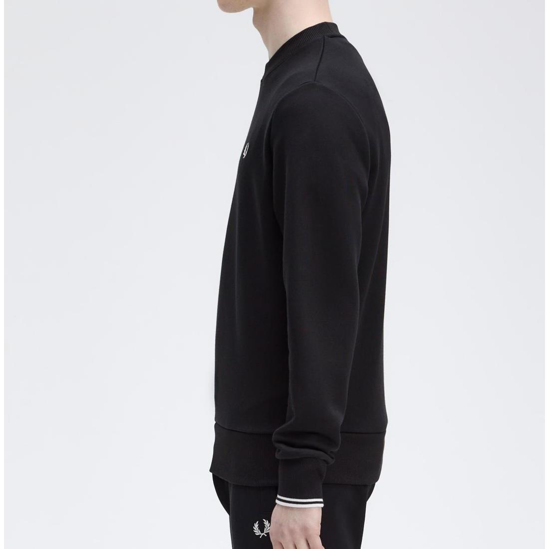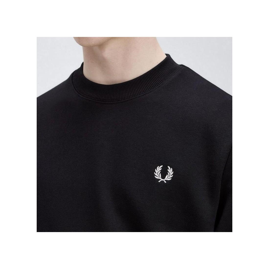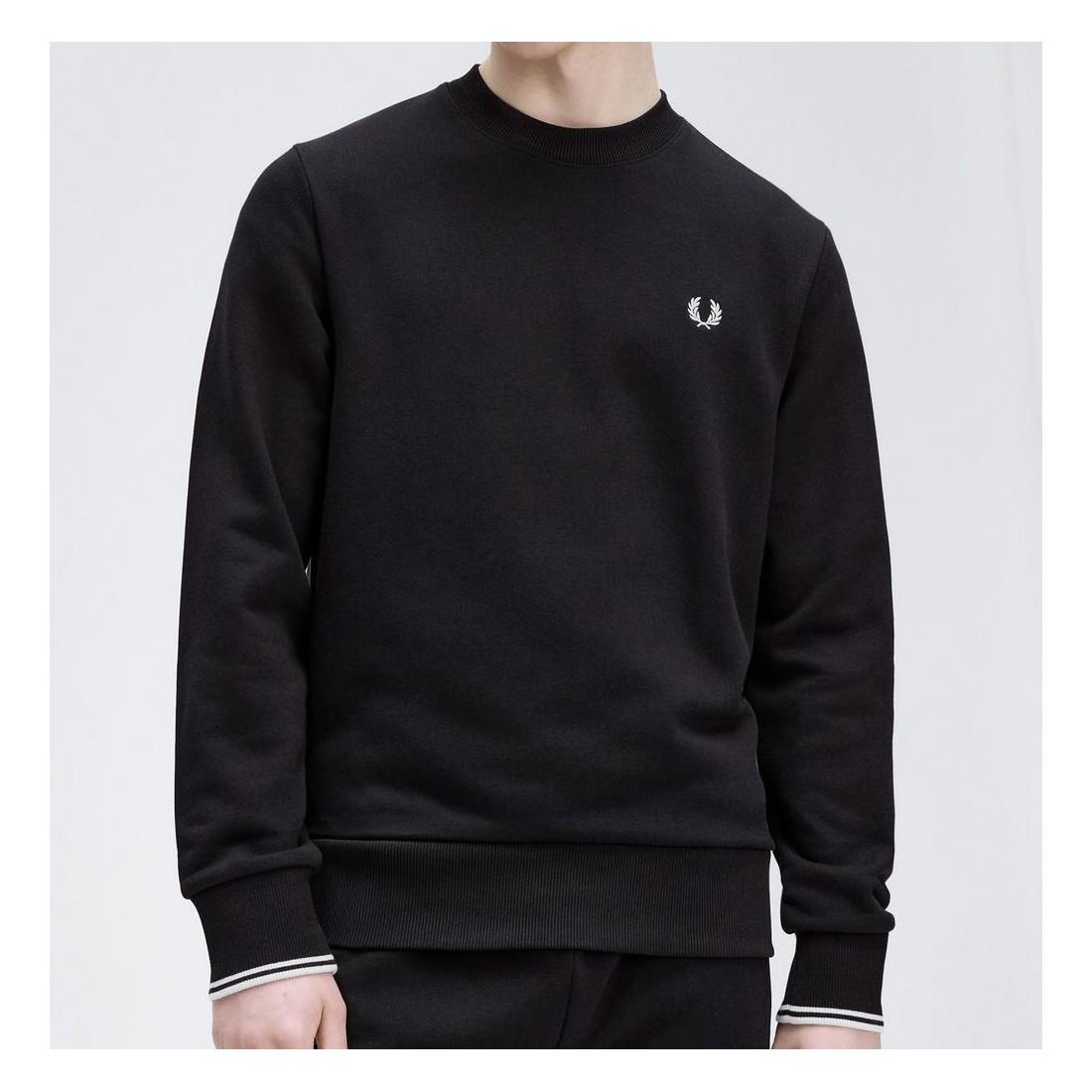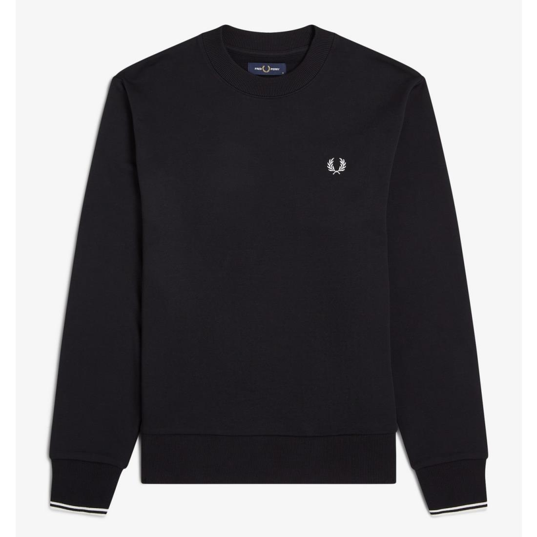 Sudadera Fred Perry de cuello redondo con ribetes de canalé y dos franjas en los bordes de las mangas. Un básico que debes tener.