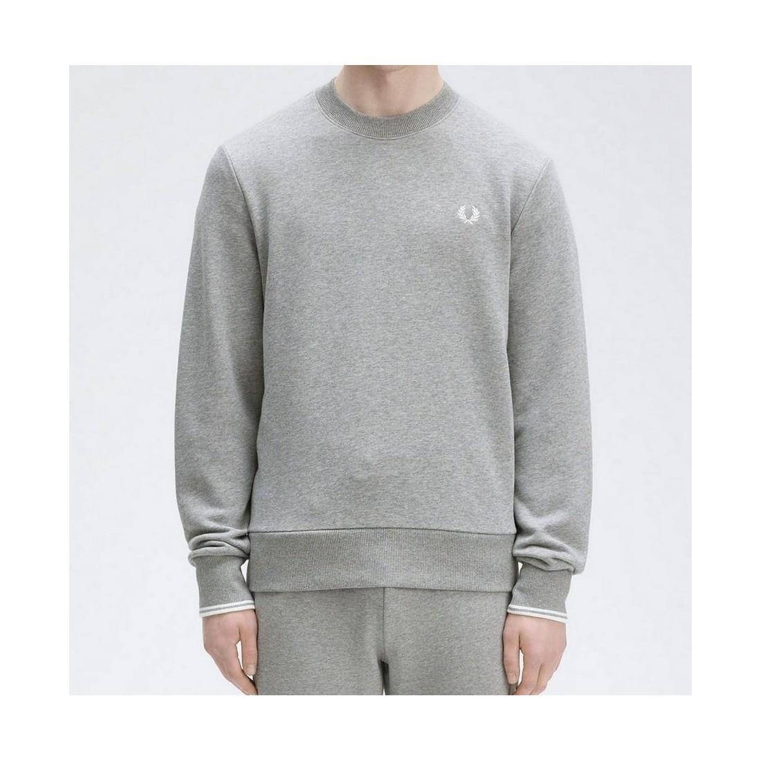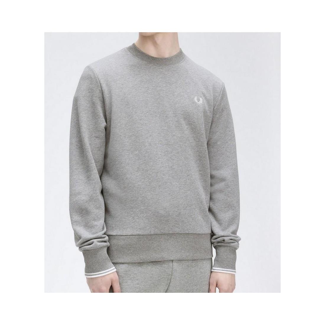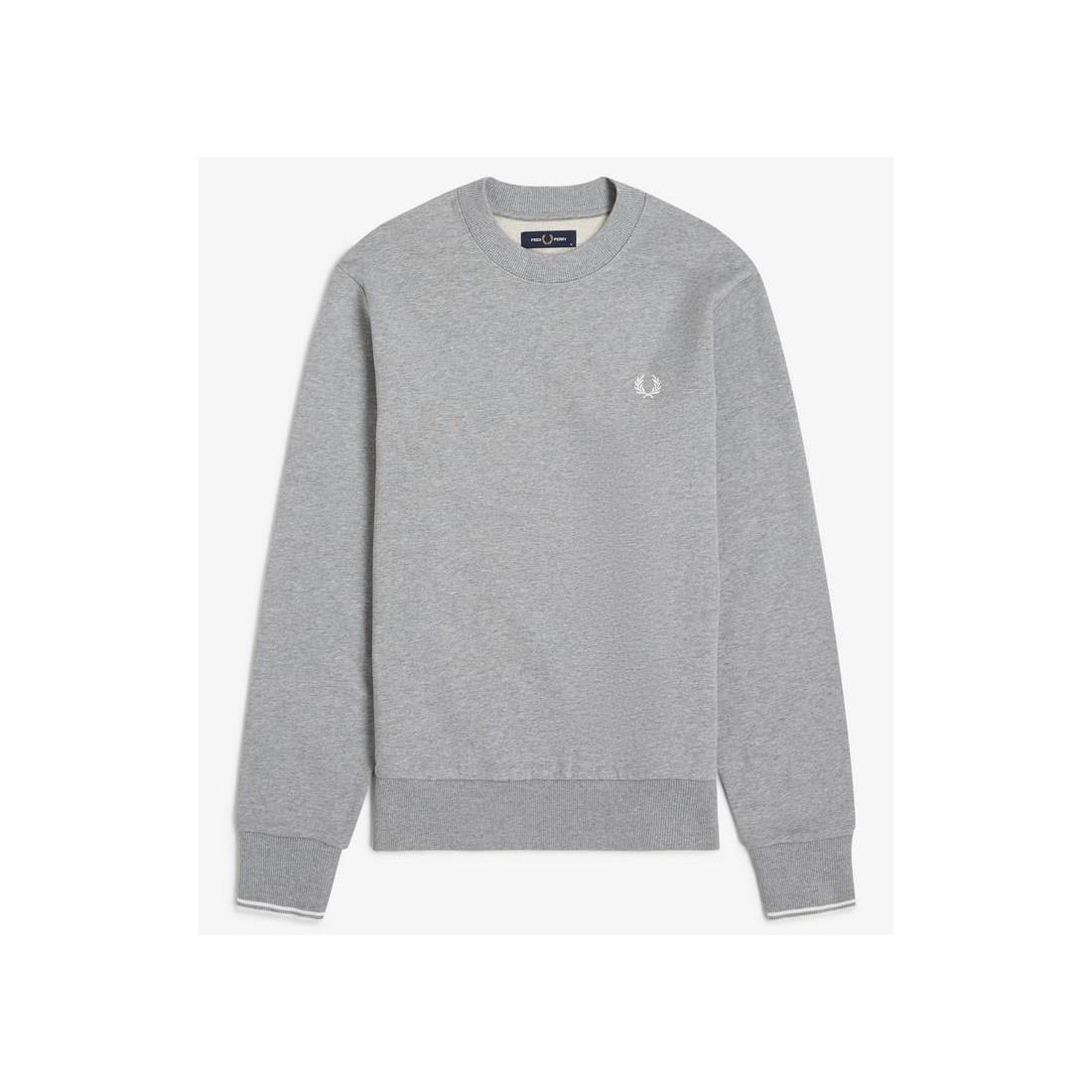 Sudadera Fred Perry de cuello redondo con ribetes de canalé y dos franjas en los bordes de las mangas. Un básico que debes tener.