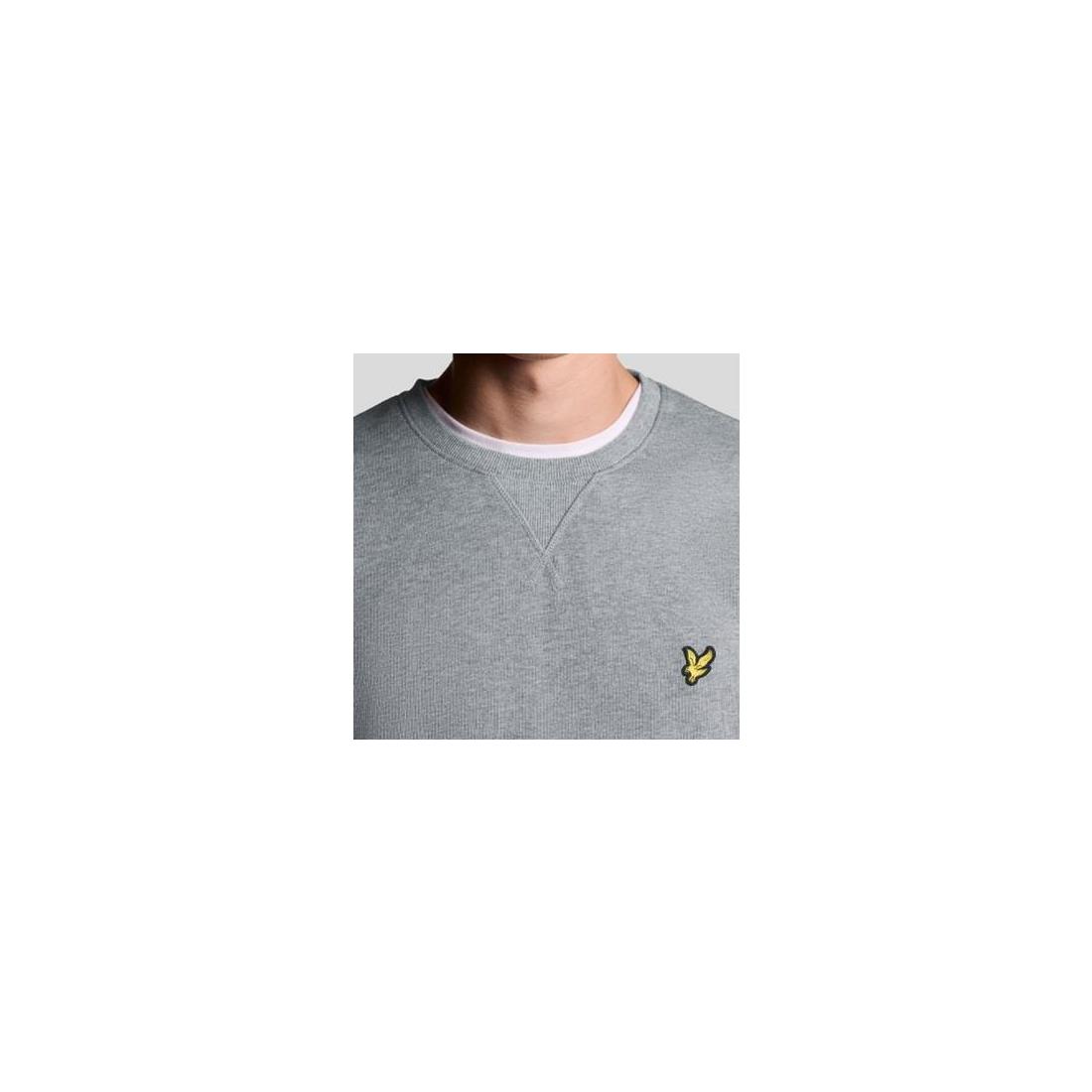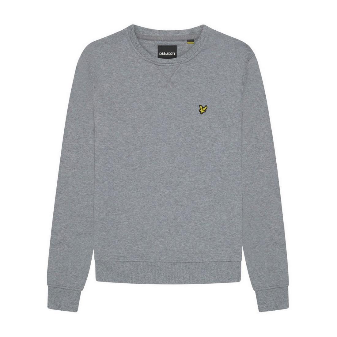 Sudadera basica Lyle & Scott de cuello redondo. Lleva el águila icónica en el pecho. Un fondo de armario.