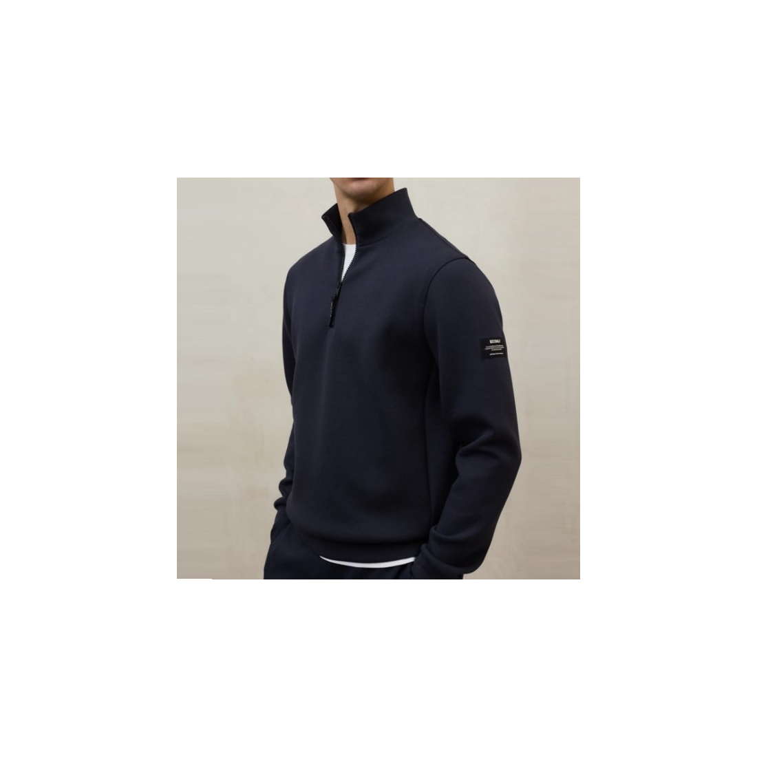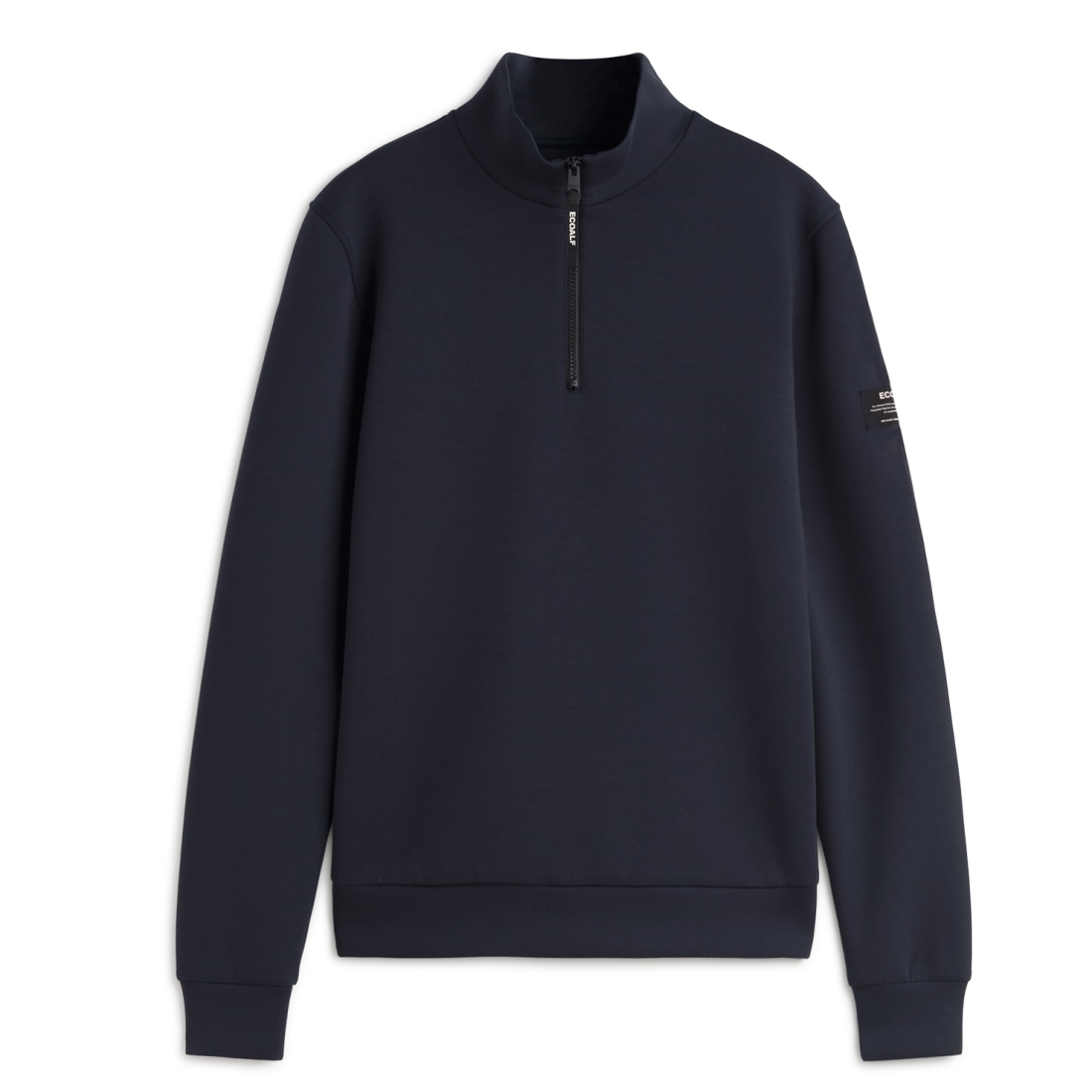 Sudadera Ecoalf Agadir fabricada con un tejido 48% Poliéster reciclado (Tex2Tex), 48% Poliéster reciclado y 5% Elastano. El poliéster reciclado puede provenir de botellas de PET post-consumo o de residuos textiles.