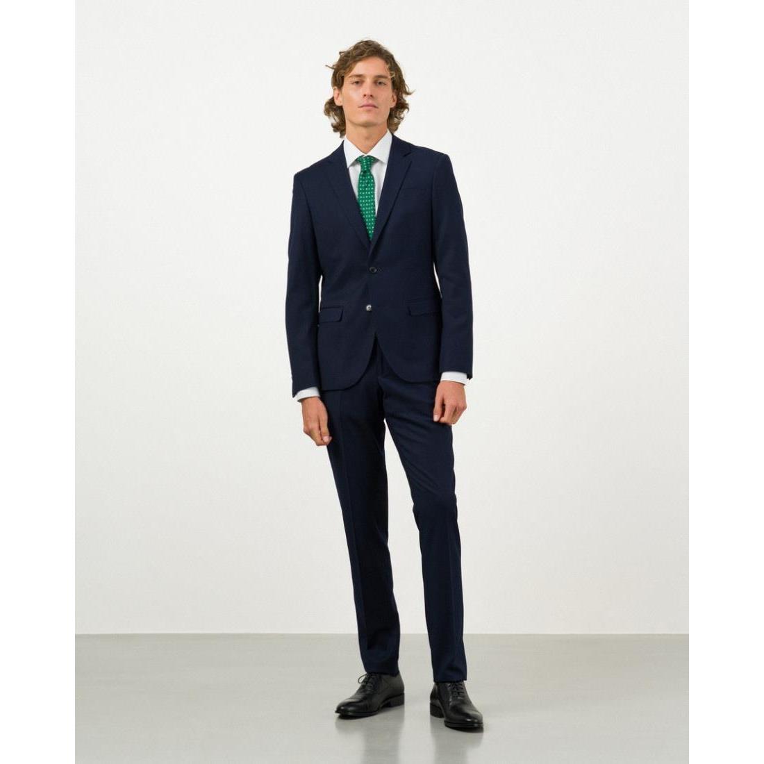 Traje Etiem extra-slim fit realizado en un tejido liso elástico. La chaqueta presenta cierre de dos botones, picadillo, una abertura en la espalda y punté en solapa estrecha y carteras bolsillos.